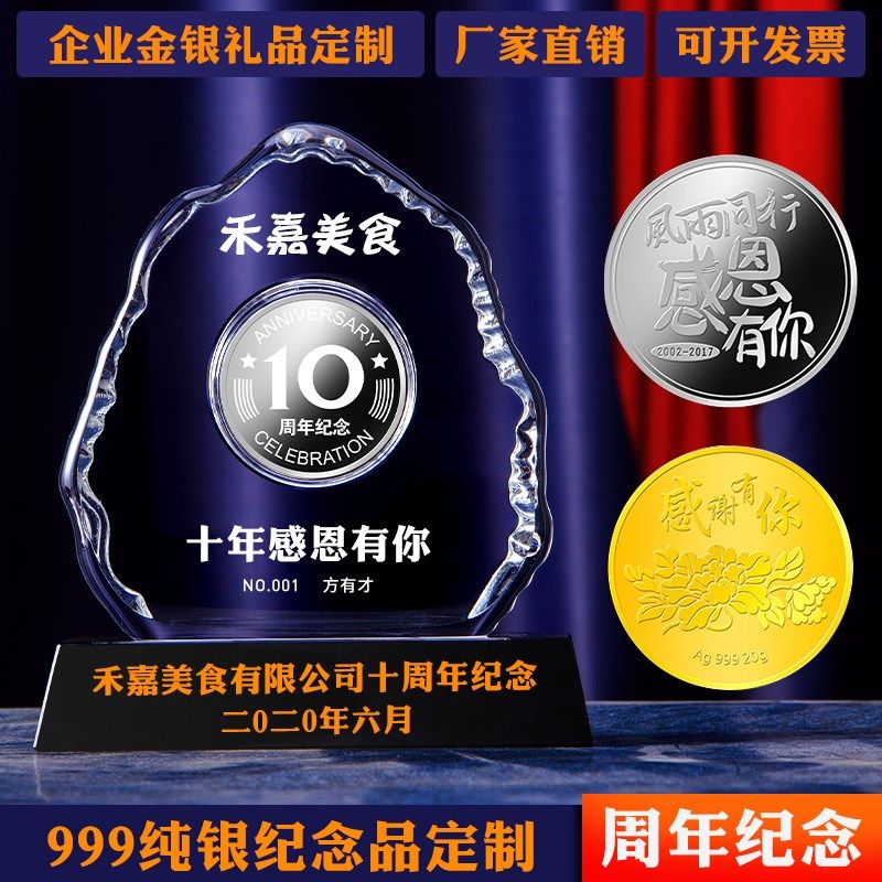 足银银币定制企业周年庆礼品员工入职荣休纪念亚克力司龄摆件定做