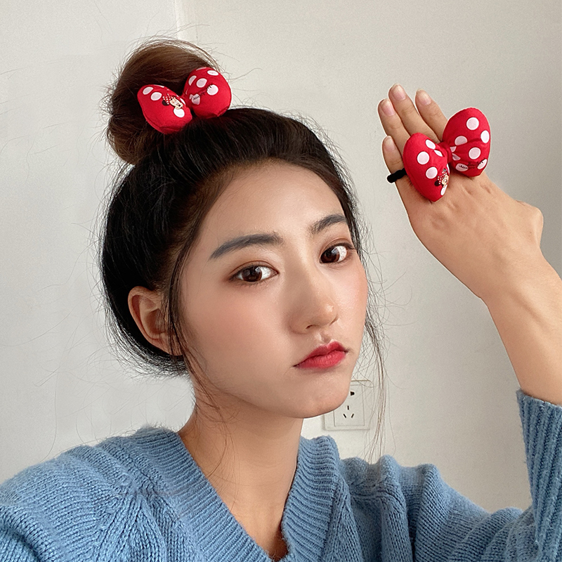立体蝴蝶结发圈扎头皮筋大红色公主女孩米奇发饰少女波点头绳学生