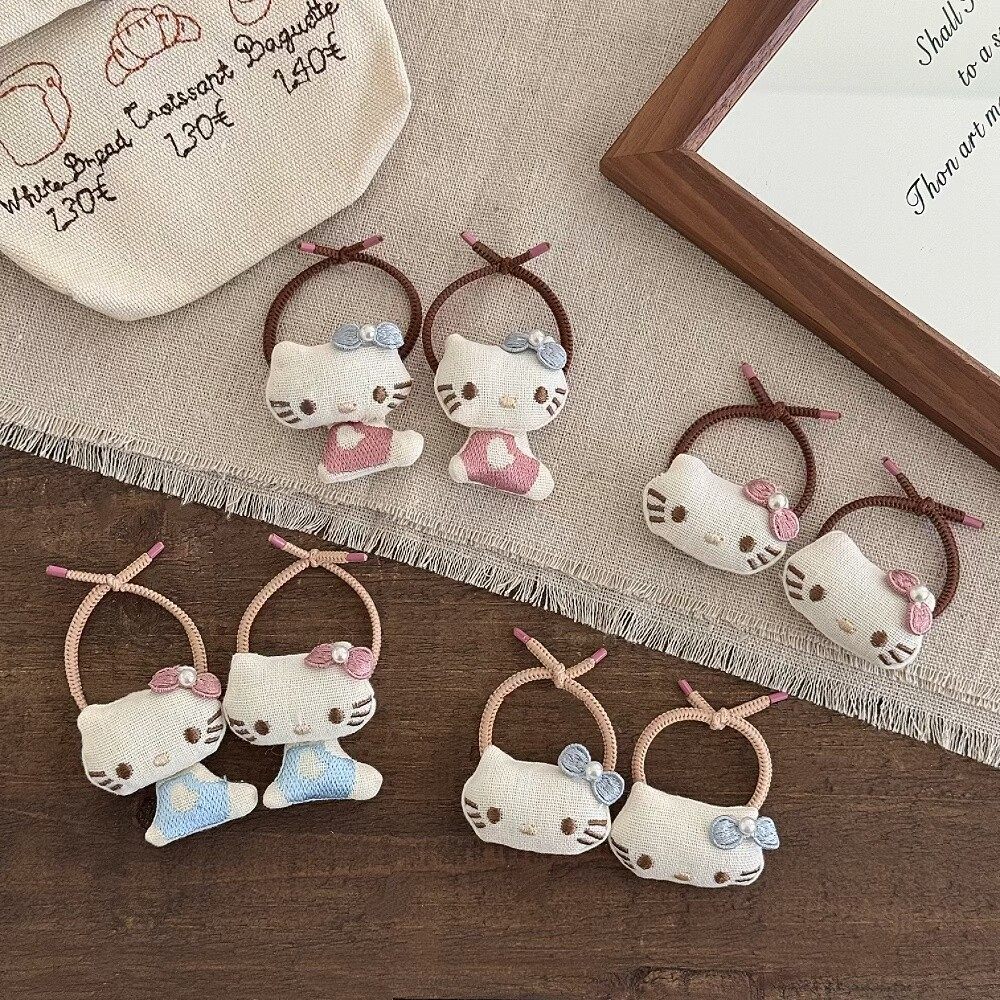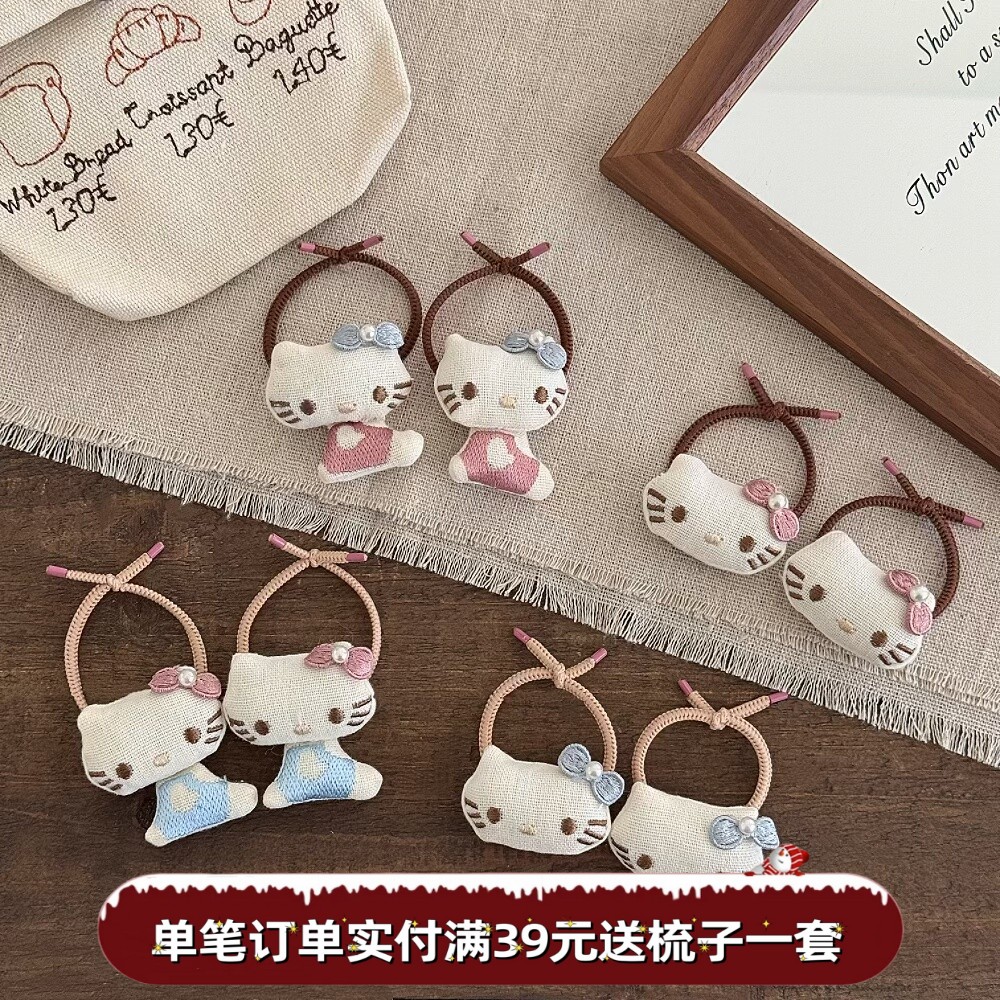 韩版儿童可爱猫咪发圈女童甜美绣花蝴蝶结头绳小女孩扎头皮筋发绳