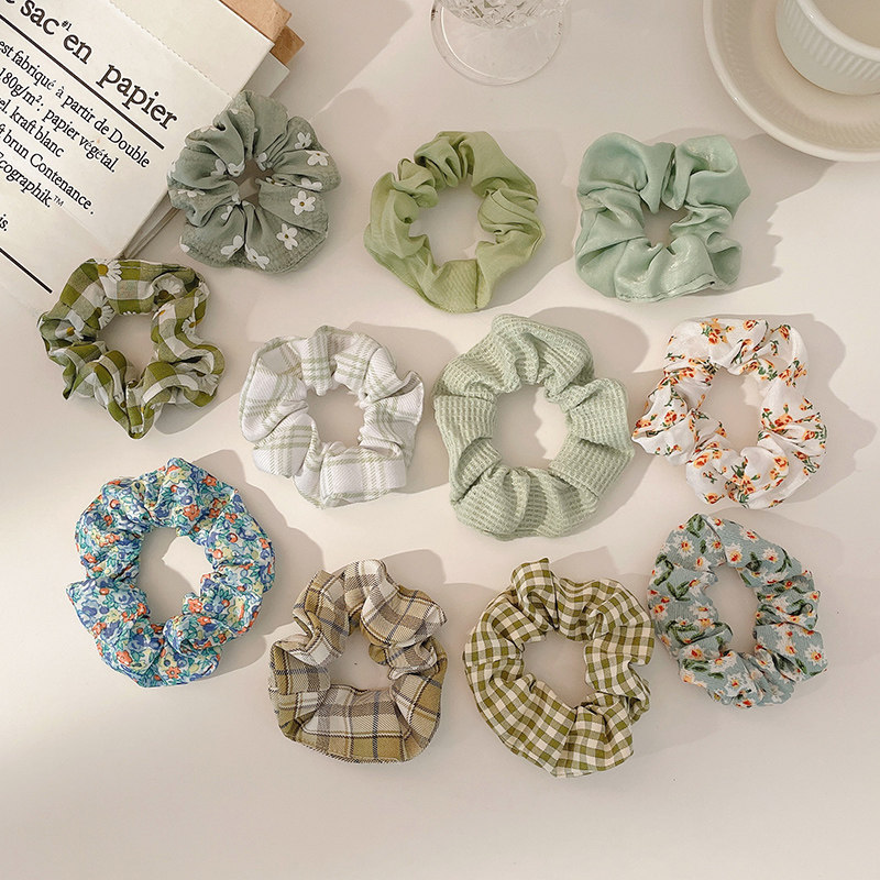 韩系小众高马尾发圈女高级感洋气时尚复古绿格子发绳扎头皮筋头饰