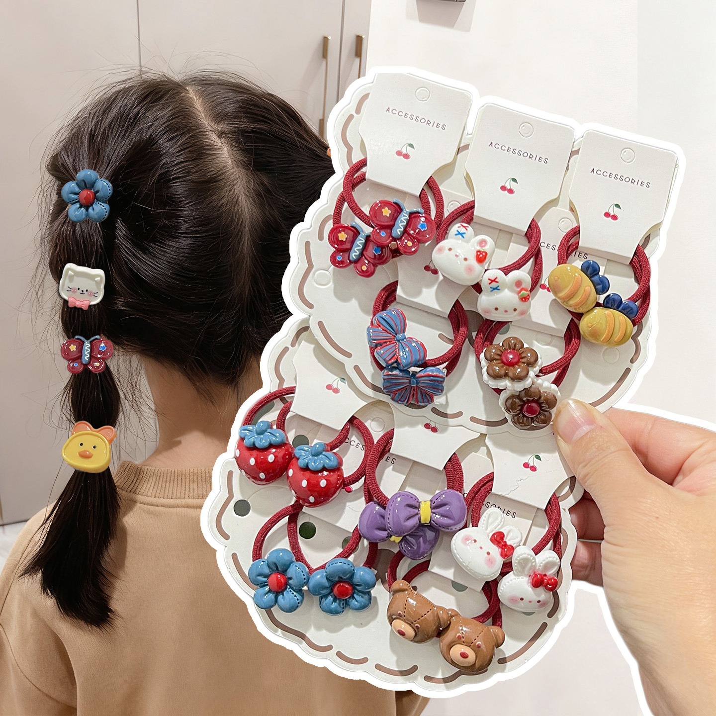 儿童发饰女童头绳双马尾酒红新年发圈女孩扎头皮筋樱桃不伤发宝宝