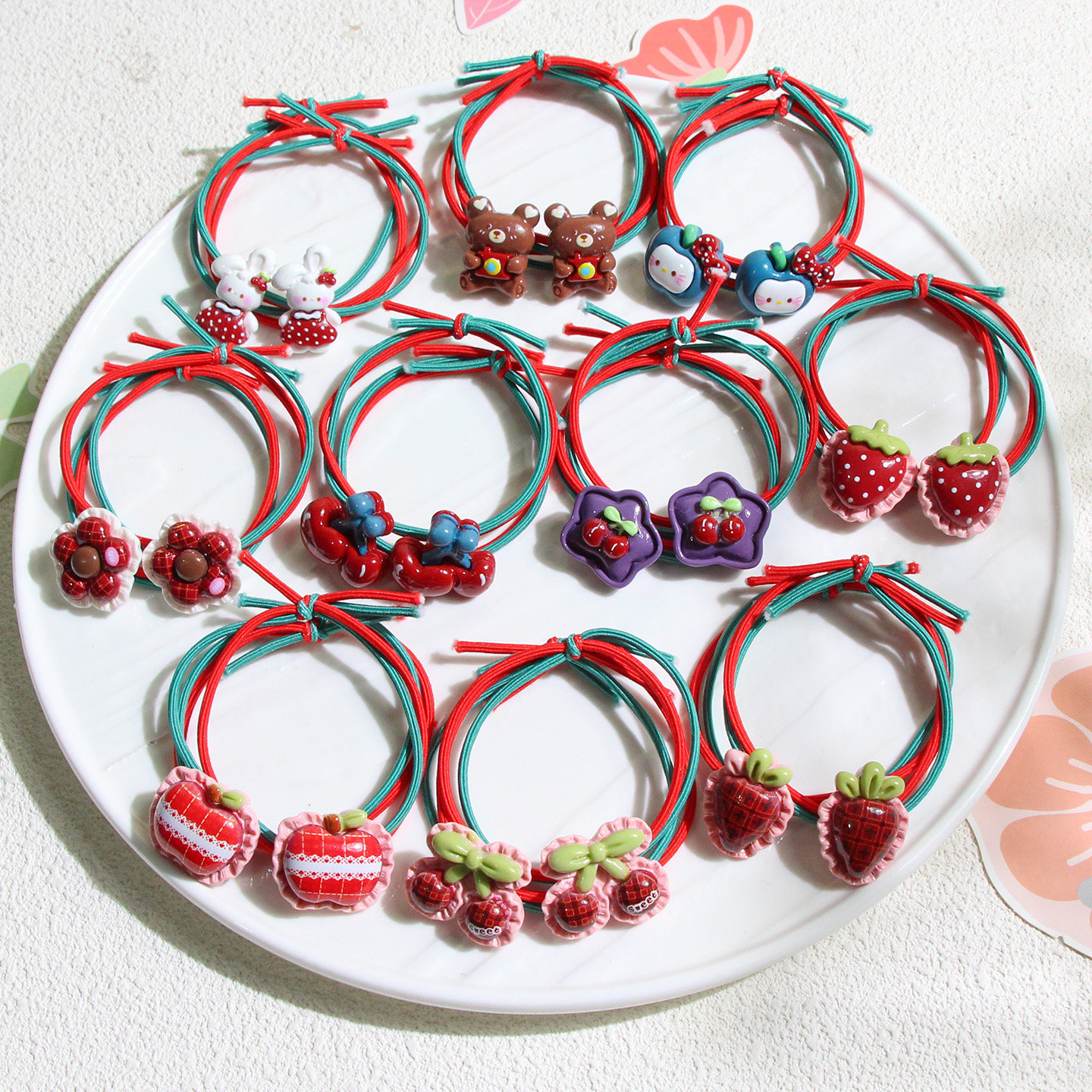 趣味卡通小女孩扎头皮筋发圈可爱动物头绳幼稚园儿童头饰苹果发绳