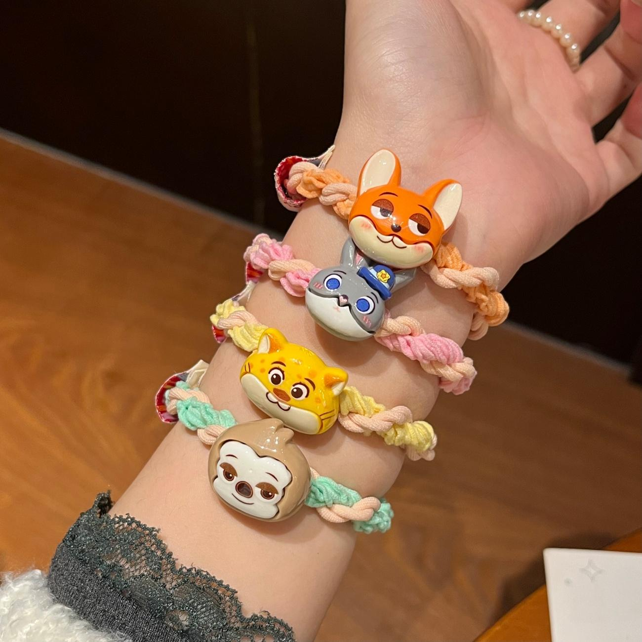卡通布标疯狂动物城朱迪尼克发圈少女高弹力麻花扎头皮筋搭发绳CH