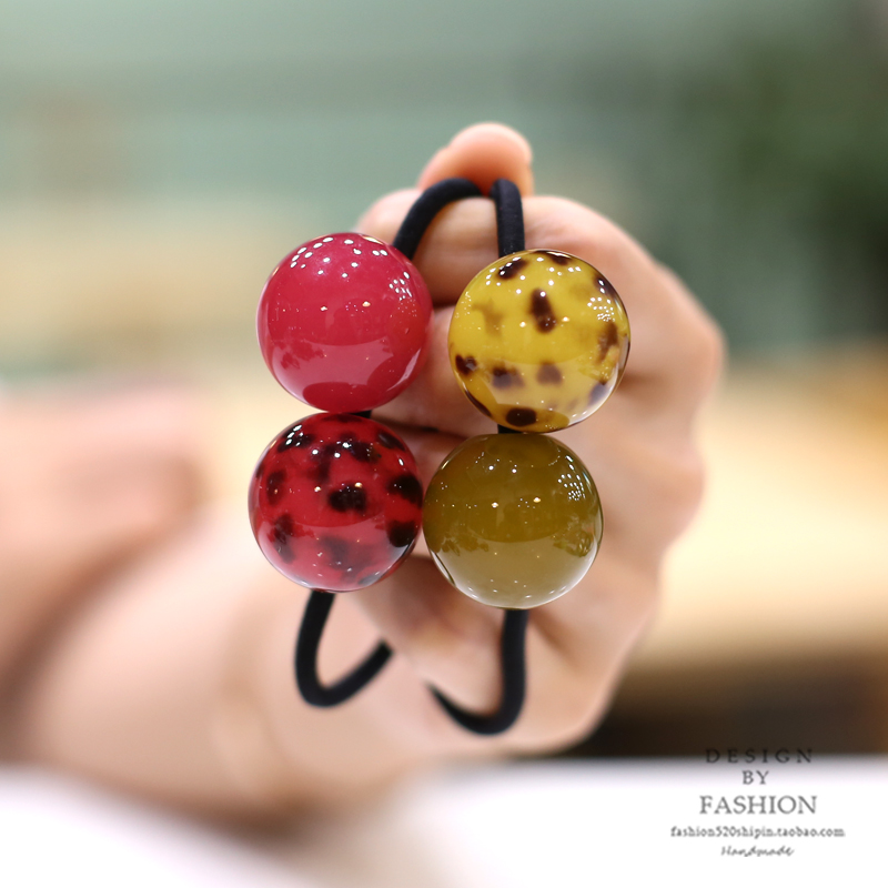 川野日韩纯色珠子橡皮筋女新款简约可爱头绳不勒发无扎痕头饰发饰