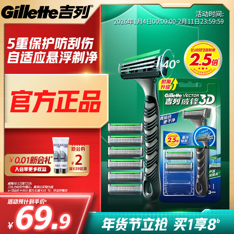 吉列威锋3强化手动剃须刀非吉利男士刮胡刀片三层刀片官方旗舰店