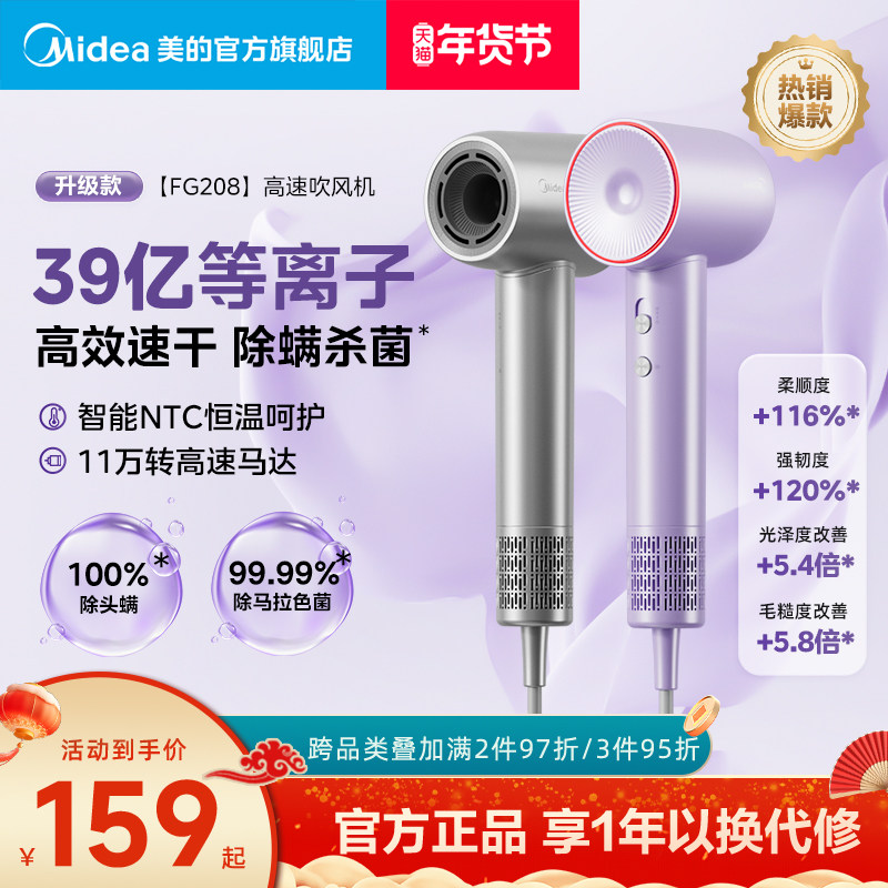 美的高速吹风机家用负离子护发速干电吹风等离子恒温风筒新年礼物