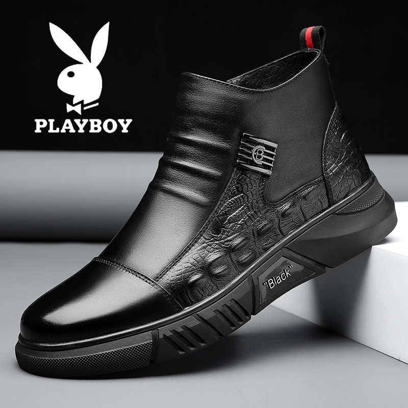 花花公子男鞋秋冬季2025新款加绒棉爆款高帮皮面板鞋男士马丁靴潮