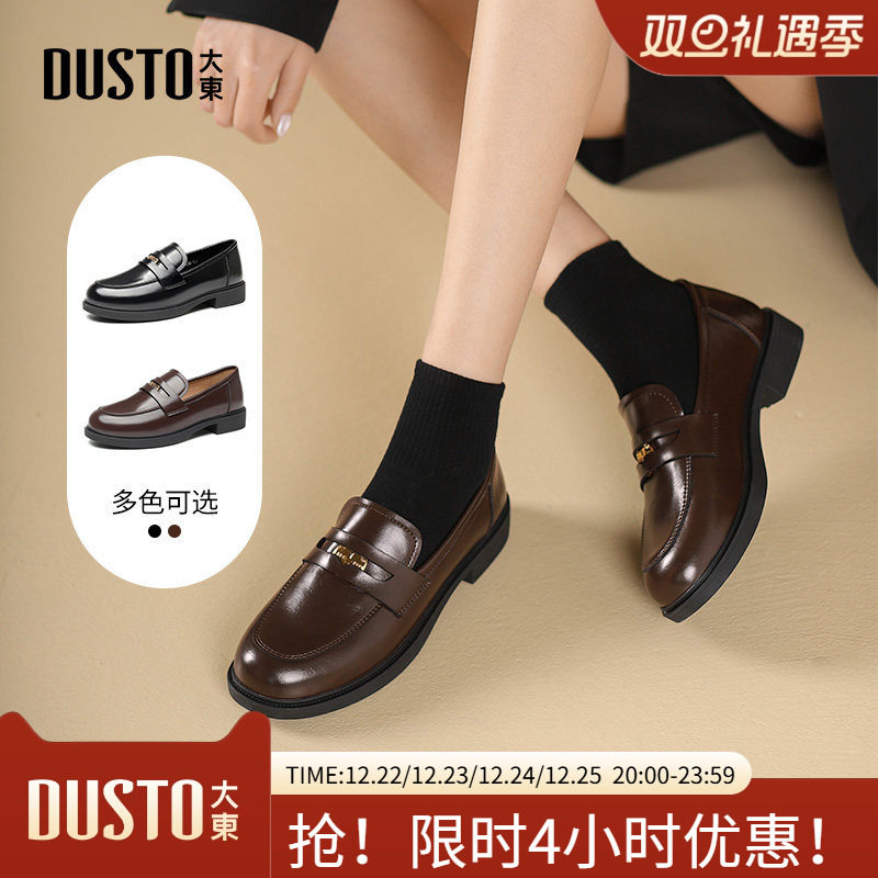 大东黑色小皮鞋女秋冬2025新款单鞋英伦风女鞋鞋子软底女士乐福鞋