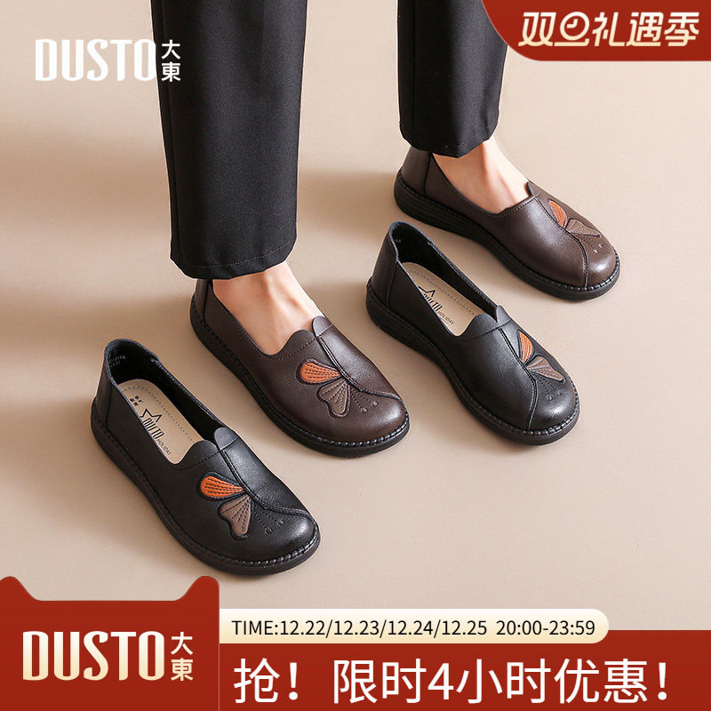 大东妈妈鞋女鞋2025春新款时尚圆头刺绣老人一脚蹬软底平底鞋5015