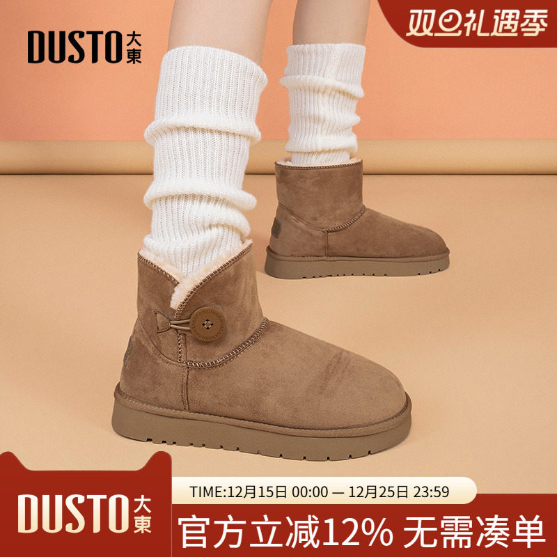 大东雪地靴女鞋2025冬季新款通勤厚底中跟圆头厚绒爆款保暖靴1206