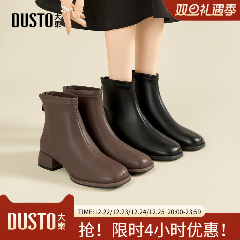 大东马丁靴女鞋2025冬季新款时尚休闲粗跟侧拉链中跟圆头D0004
