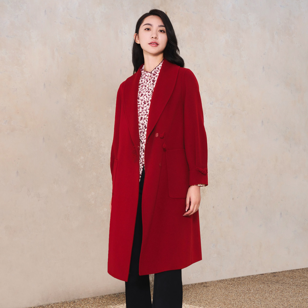 【新年战袍】LANCY/朗姿2024年冬新款纯羊毛大红色毛呢外套女大衣