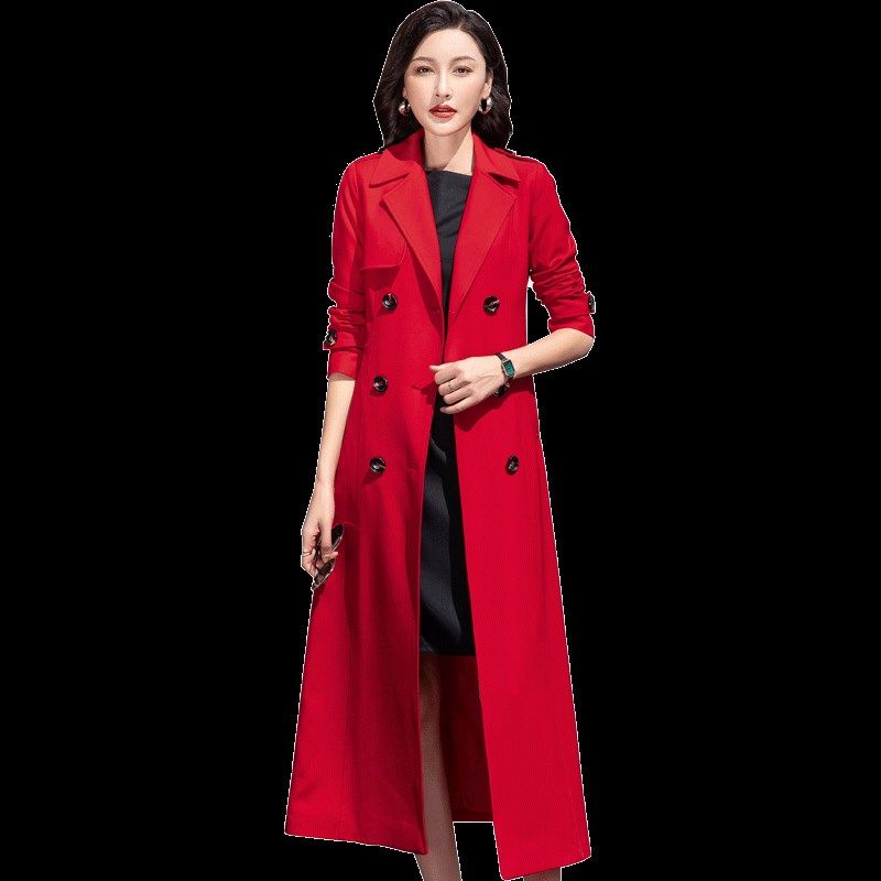 本领年红风衣女2025早春新长款外套大红色时尚显高气质大衣双排扣