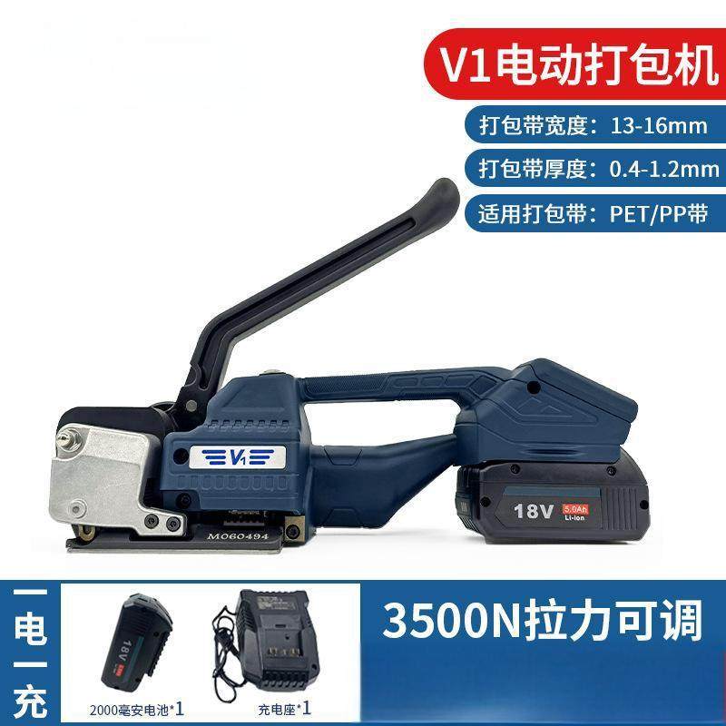 佰扩V1手摇式电动打包机全自动PP/PET带免扣充电式捆扎收紧一体机