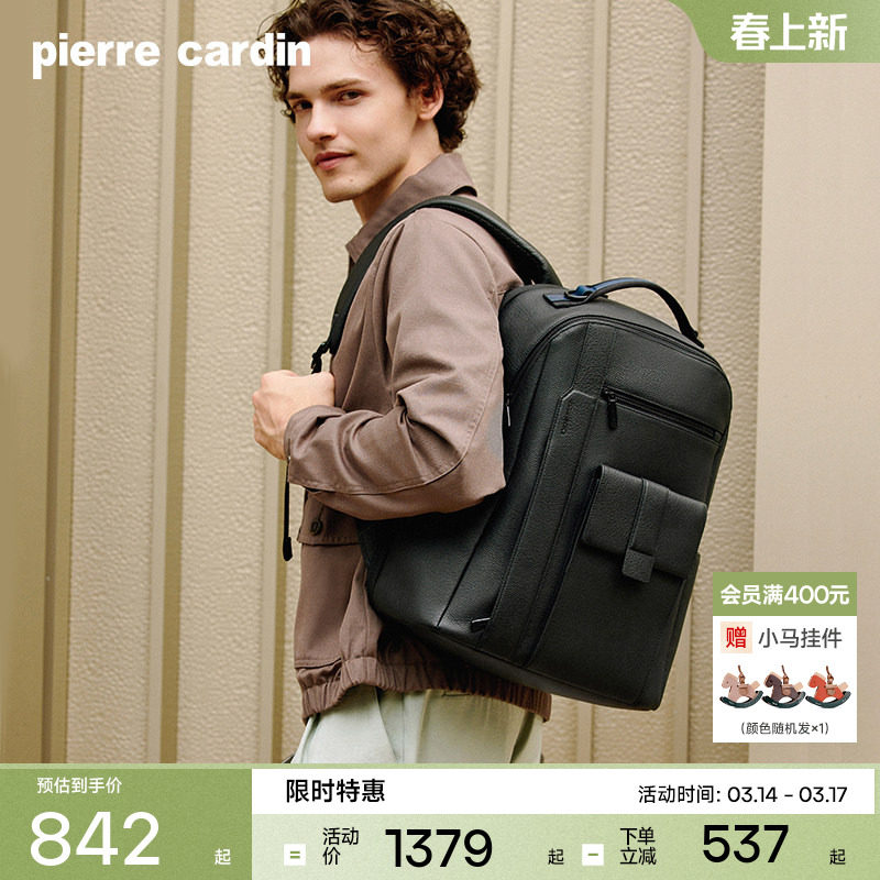 【真皮】皮尔卡丹男包大容量双肩包男士商务电脑通勤背包出差旅行