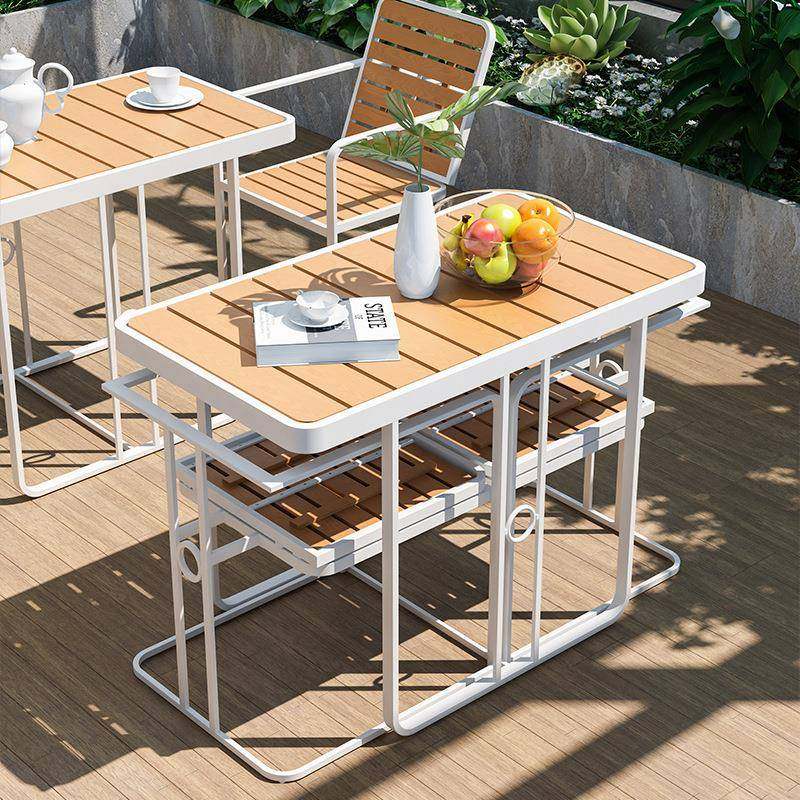 户外阳台桌椅三件套休闲茶桌椅组合可收纳一桌二椅小户型塑木茶桌