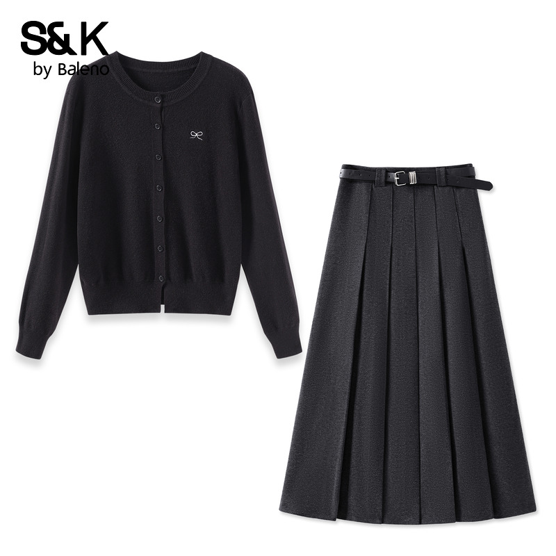 班尼路S&K系列休闲套装女2025秋季新款针织开衫半身裙穿搭两件套H