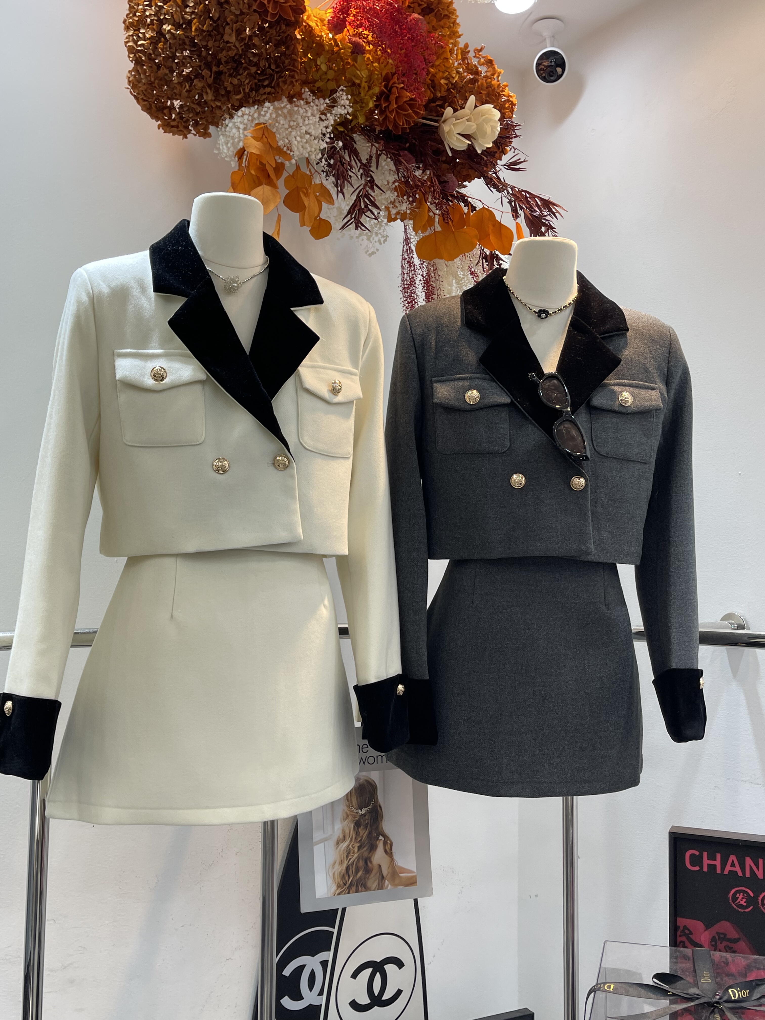织物猪 丝绒拿铁 正装制服学院风套装女大学生冬季半身裙两件套