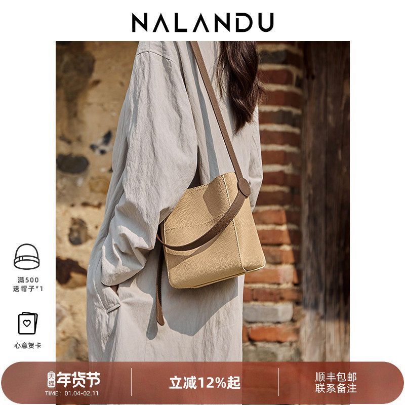 纳兰杜包包女式2025新款超火小水桶包斜挎包通勤手提单肩真皮女包