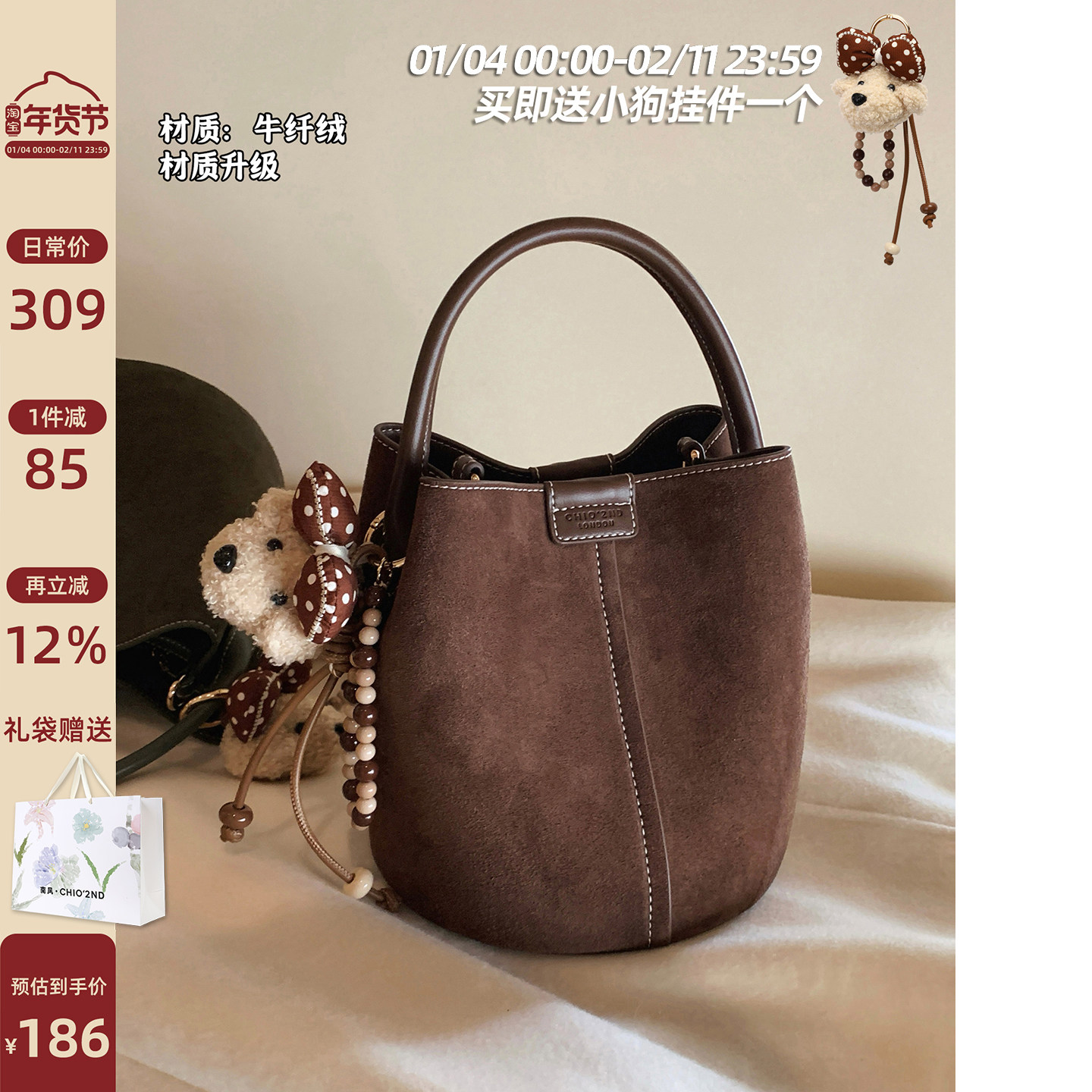 南风Chio2nd 牛纤绒漫野秋声水桶包包女式2025新款手提单肩斜挎包
