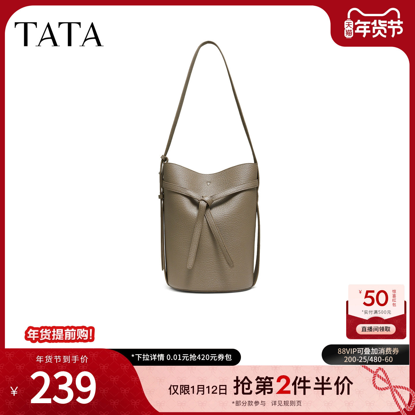 TATA他她女包2025冬季新款通勤气质简约包小水桶包单肩包LB339CX