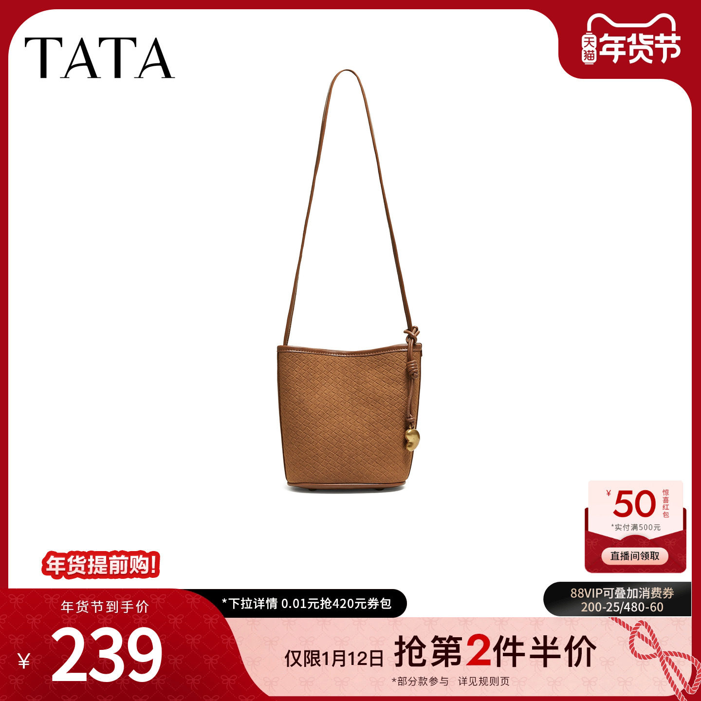 TATA他她女包2025冬季新款高级感简约通勤小水桶包斜挎包LB336CX5