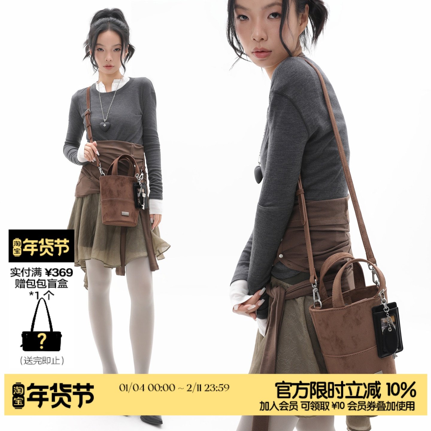简着25AW 原创 深棕色 里尼墩墩小水桶包 含挂饰麂皮绒手提斜挎包