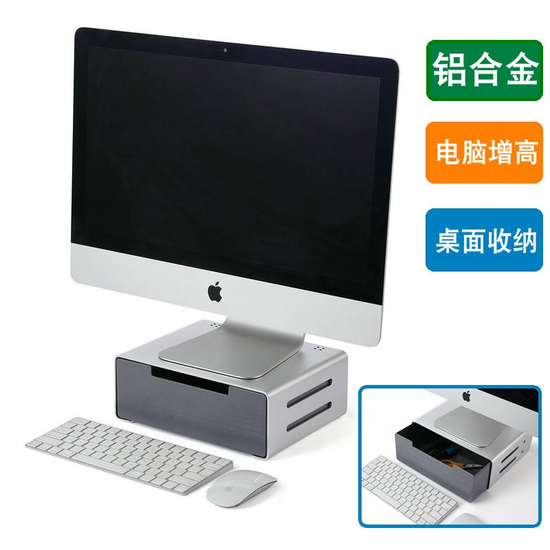 电脑显示器增高架带抽屉usb一体机台式萤幕底座桌面折叠收纳置物架imac屏幕RGB工位扩展多功能笔记本电脑支架