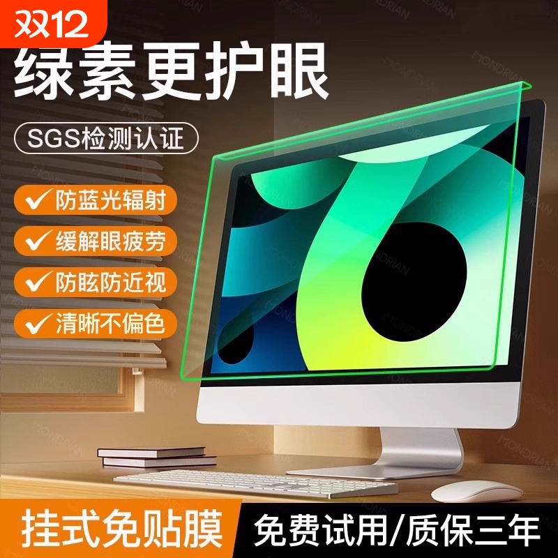 叶绿素防蓝光电脑屏幕罩挂式免贴防辐射保护屏24寸台式电脑显示器护眼膜防近视27寸23.8笔记本适用苹果一体机