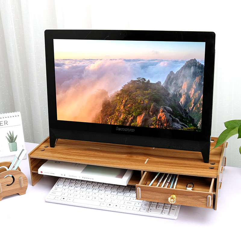 派凡实木升降电脑增高架显示器可调节抬高台式一体机办公室桌面工位笔记本加高支撑萤幕屏幕垫高底座置物架子