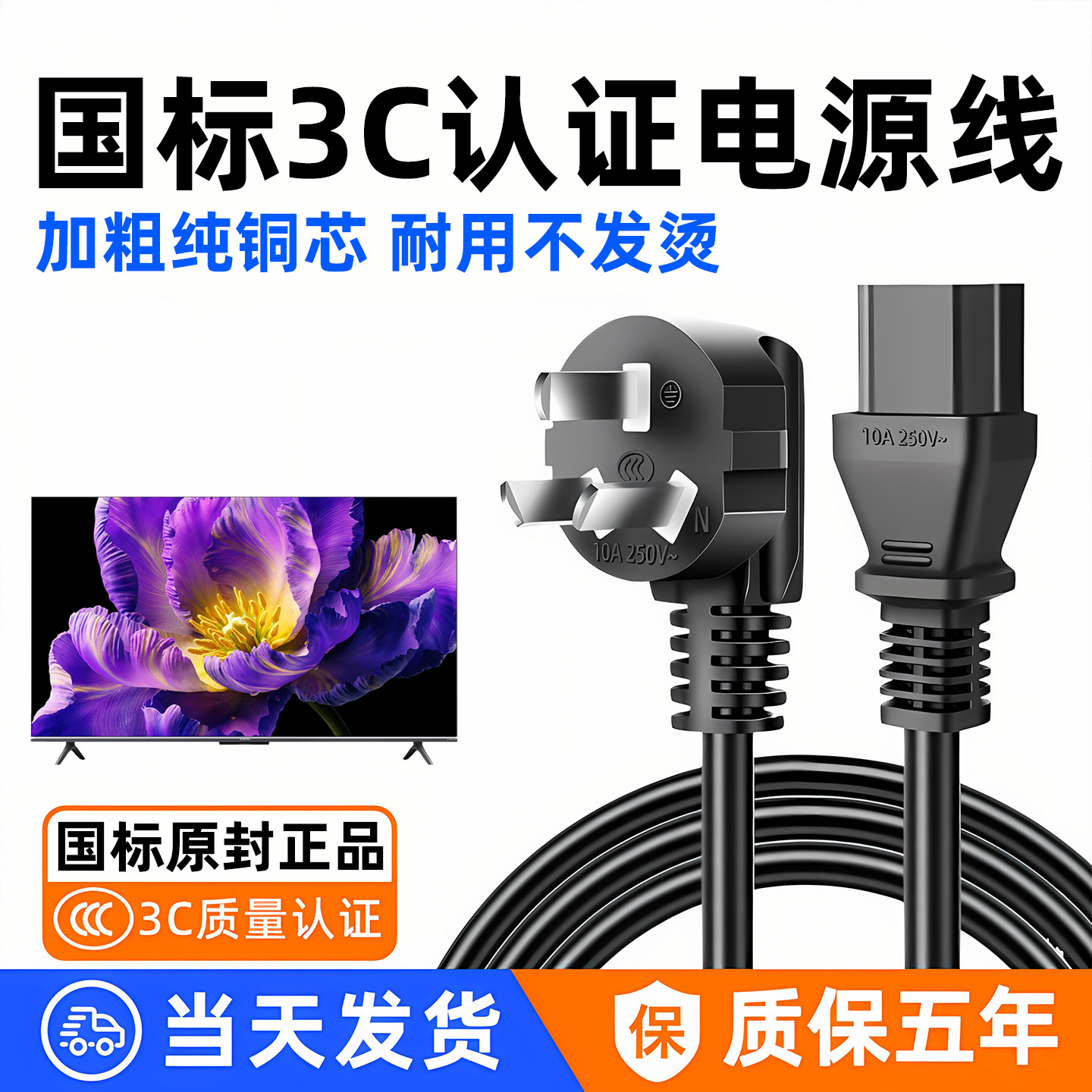 电脑显示器屏幕台式主机箱一体机笔记本三孔电源连接线通用加粗长