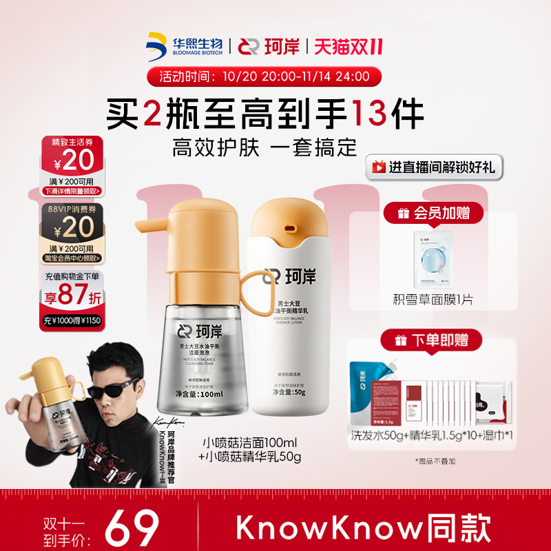 【披哥同款】华熙生物珂岸小喷菇干洗洁面泡泡慕斯去黑头洗面奶男