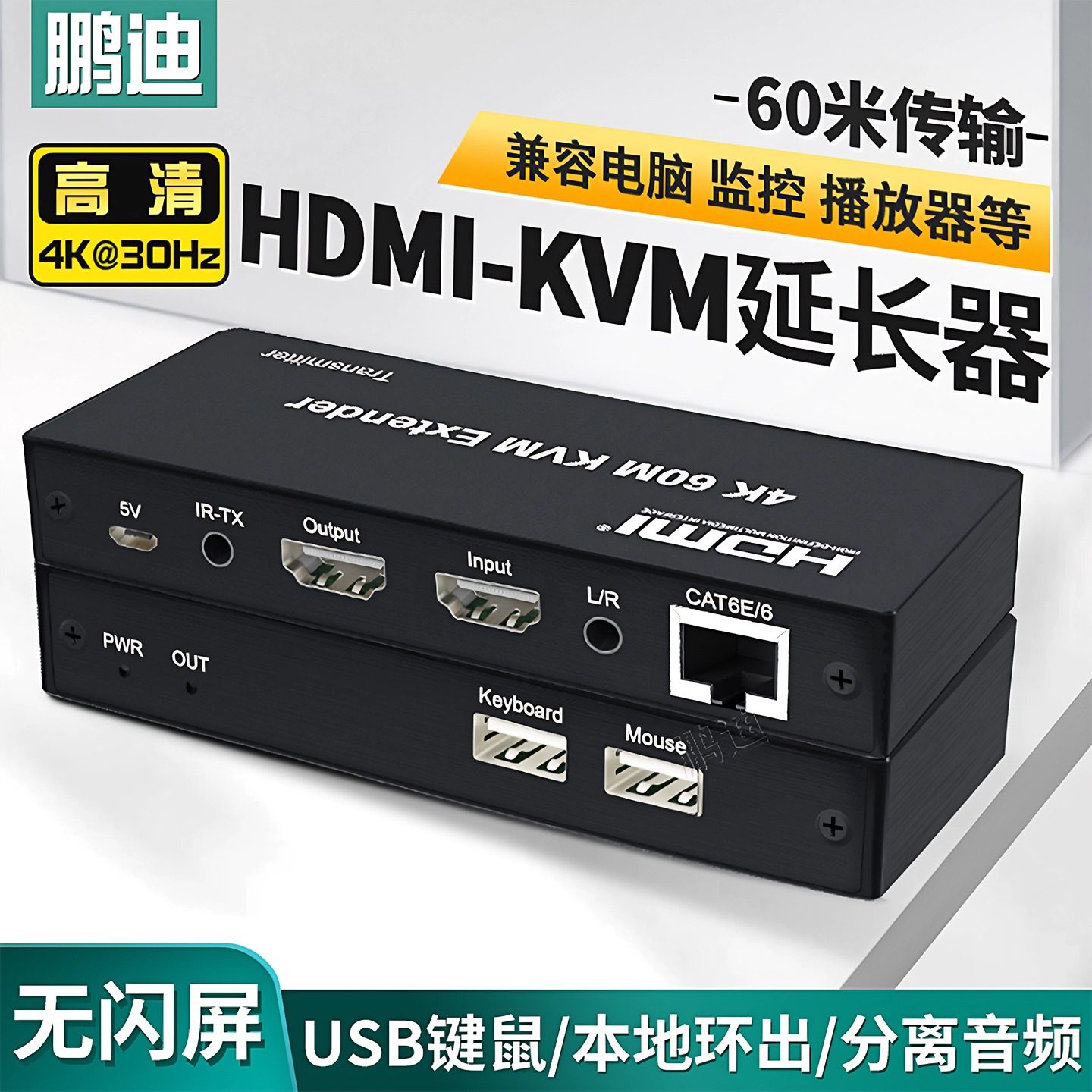 HDMI延长器KVM带USB鼠标键盘网线传输器60米100米RJ45交换机KVM网络收发传音视频放大器1080P工程级