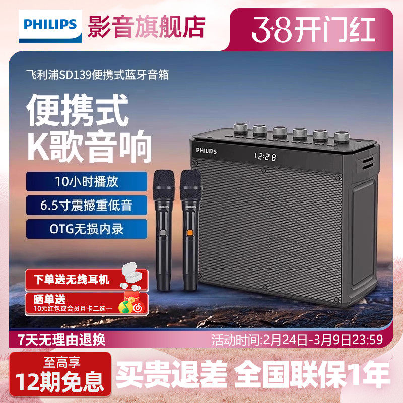 飞利浦SD139便携式蓝牙音箱户外手提肩带多功能广场舞k歌移动音箱