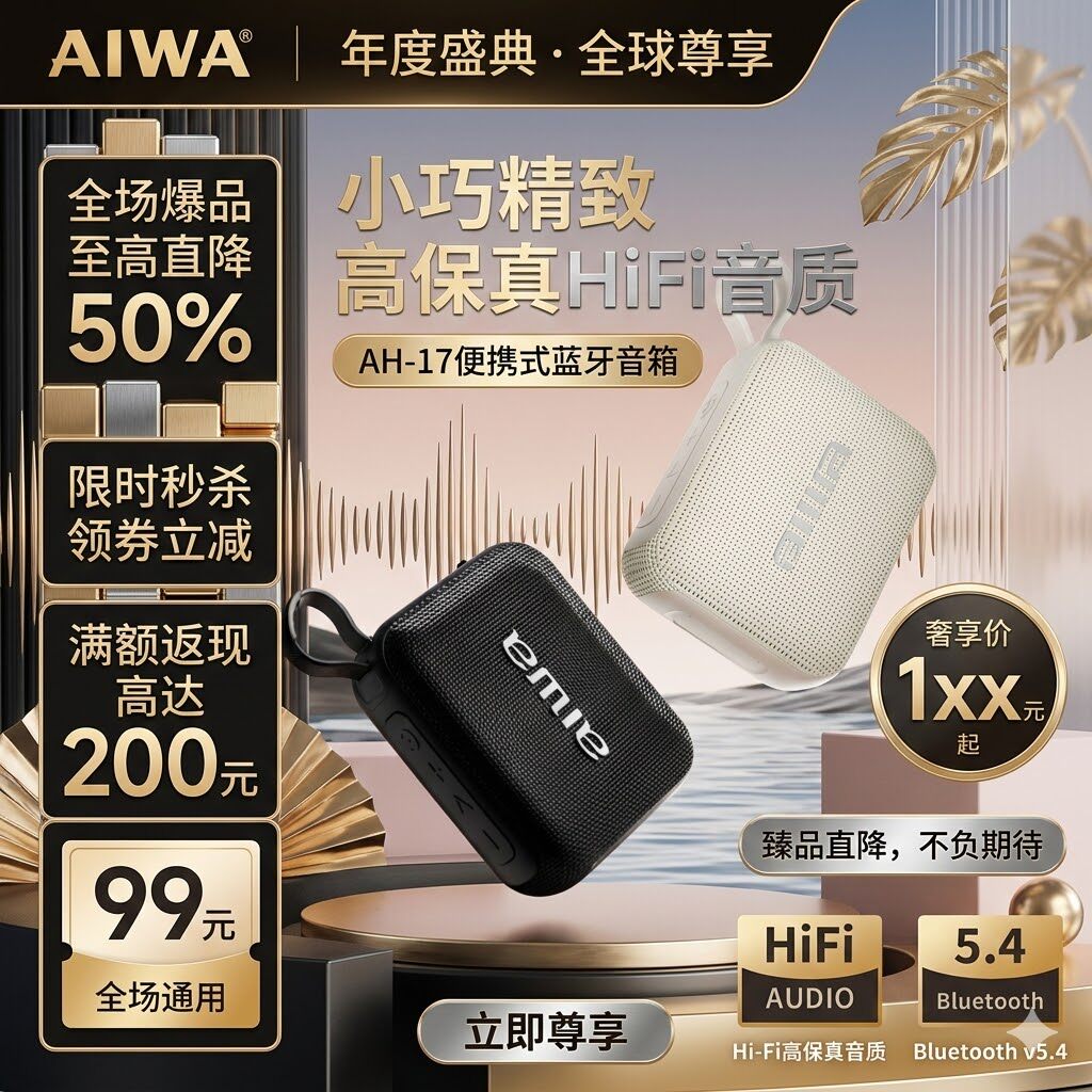 AIWA爱华AH-17便携式蓝牙音箱HiFi重低音户外迷你音响重低音音箱