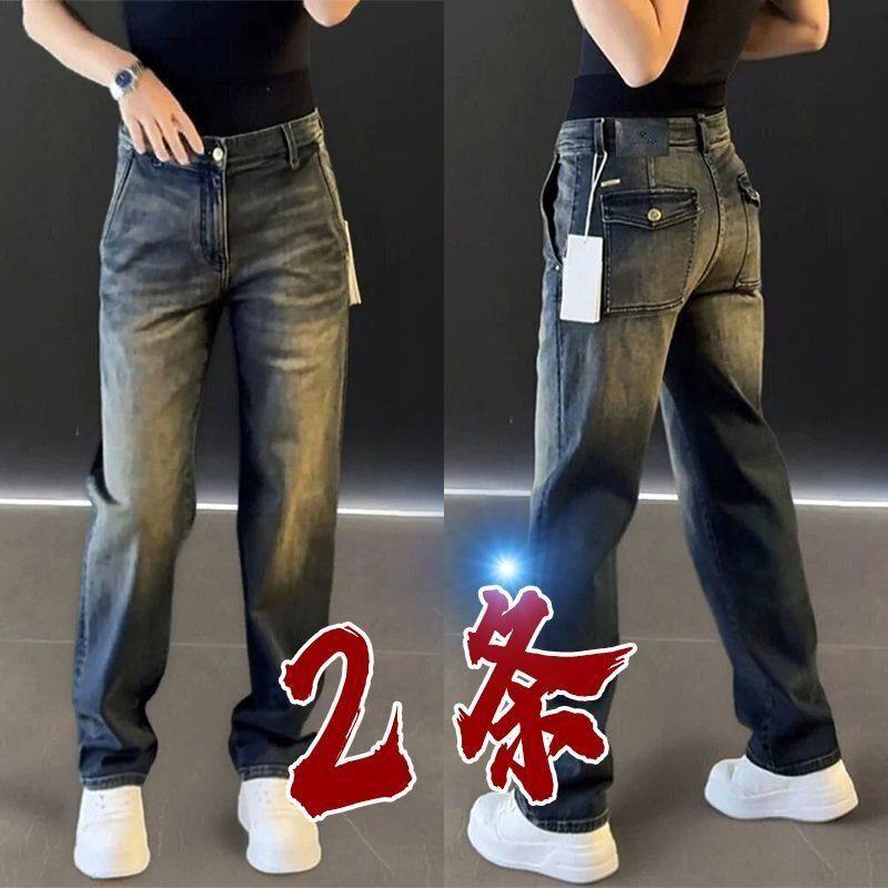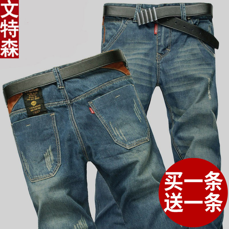 斜口袋款牛仔裤男修身直筒休闲百搭潮牌长裤子男韩版青年复古男裤