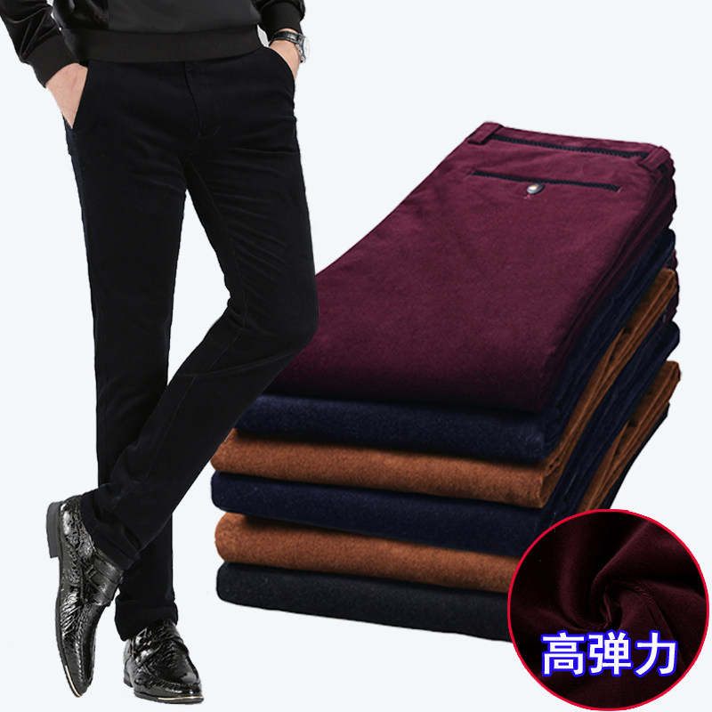 秋冬季灯芯绒男裤弹力男士休闲裤韩版修身直筒长裤子加厚款条绒裤