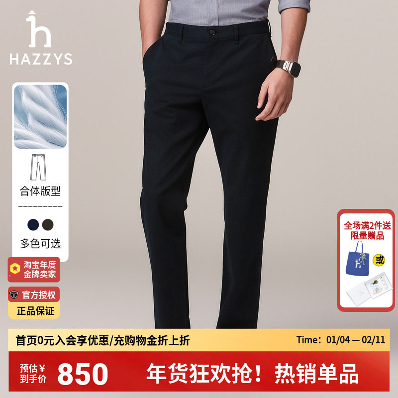 Hazzys哈吉斯正品男裤秋冬季男士简约休闲裤子纯色韩版商务长裤男