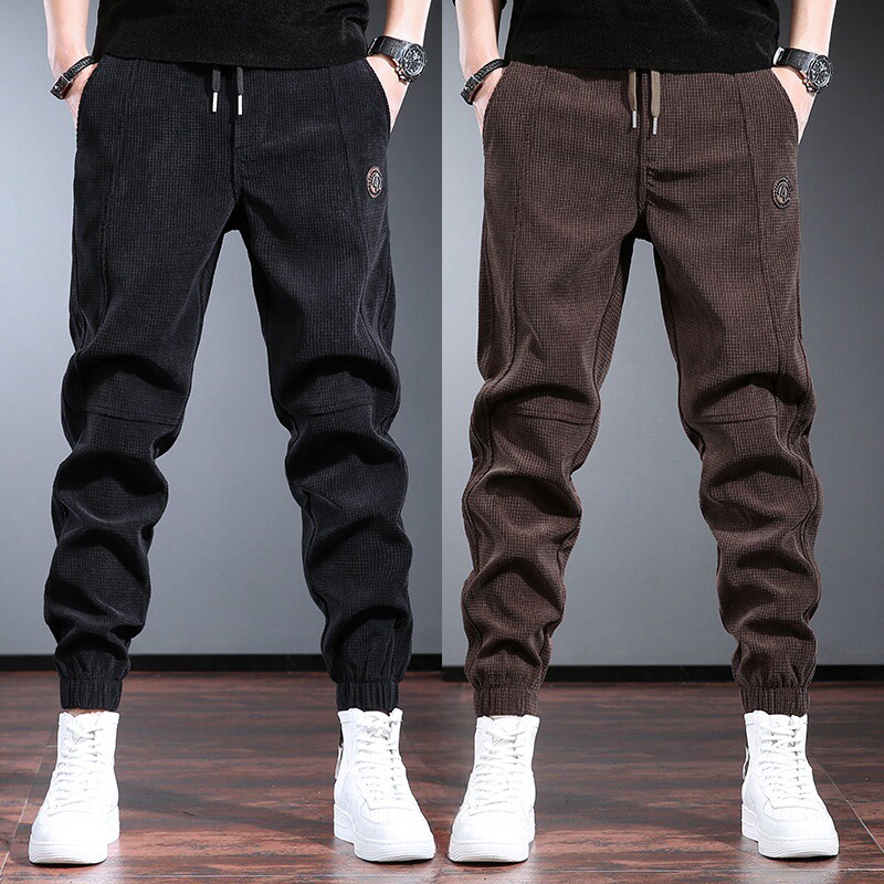 灯芯绒裤子男款休闲裤秋季韩版潮流修身小脚长裤爸爸秋冬潮牌男裤