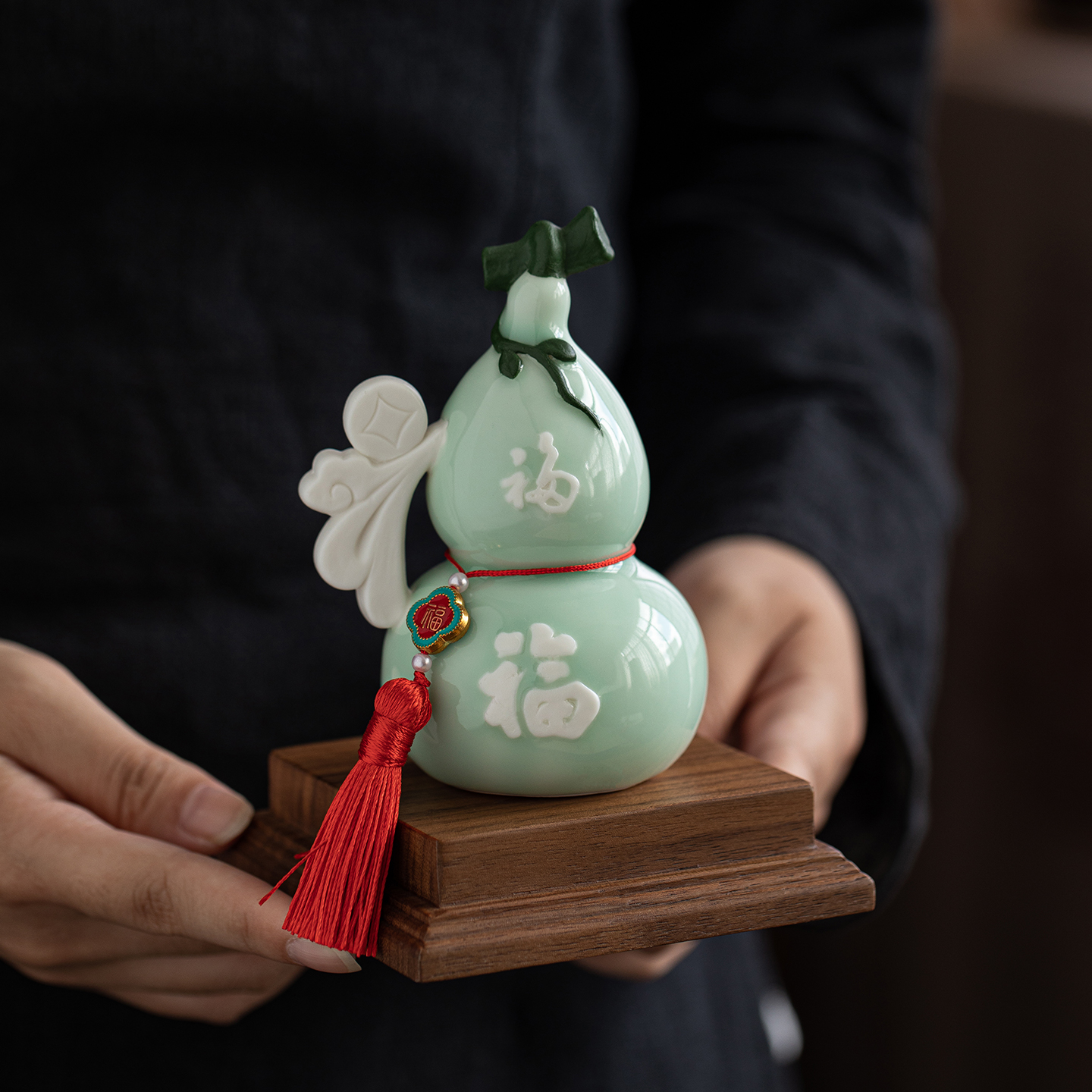 青瓷葫芦茶宠摆件创意客厅书房办公室柜台桌面家居摆设装饰工艺品