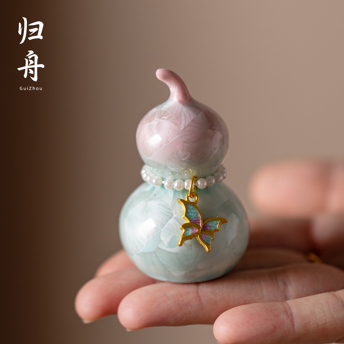 闻斋新中式窑变结晶釉家用小清新渐变茶宠高颜值陶瓷葫芦创意摆件