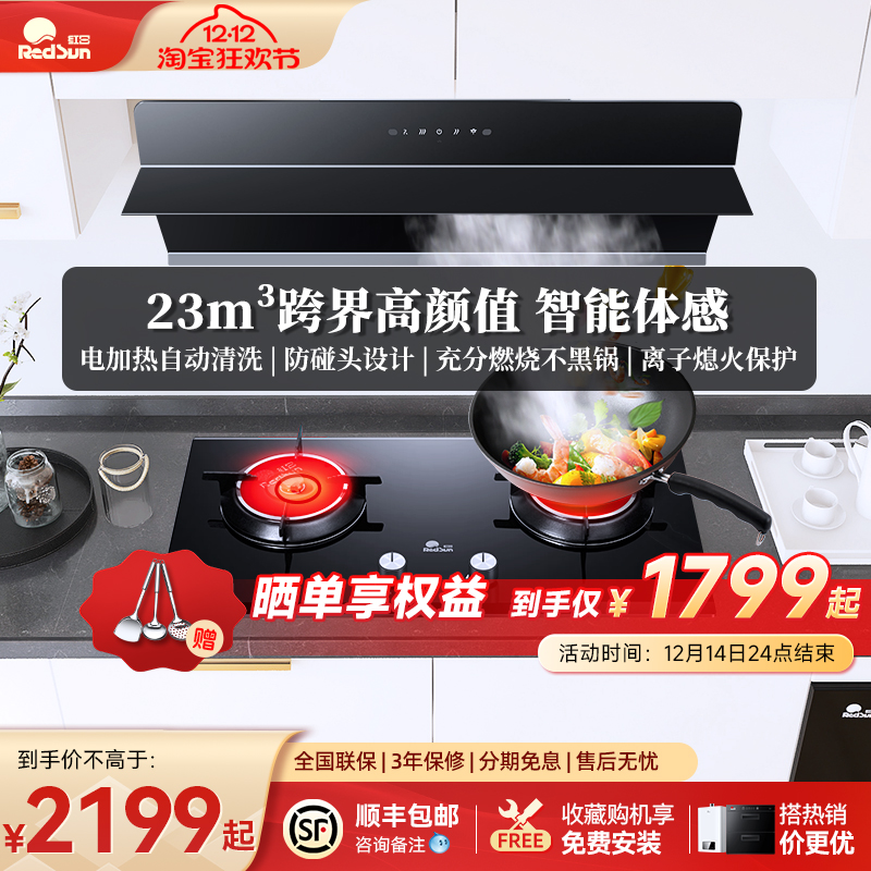 红日侧吸式顶吸油烟机燃气灶套餐抽烟机灶具套装组合家用RTEU06