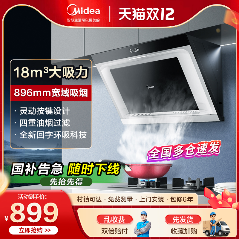 [政府补贴20%]美的抽烟机侧吸式抽油烟机家用厨房吸油烟机大吸力