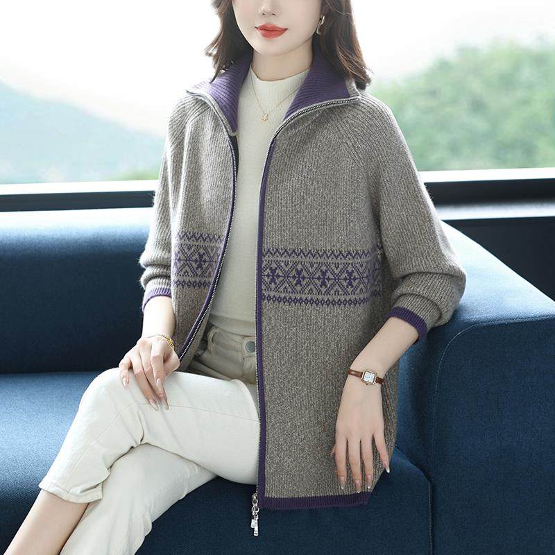 - 女针织开衫 长袖 中长款