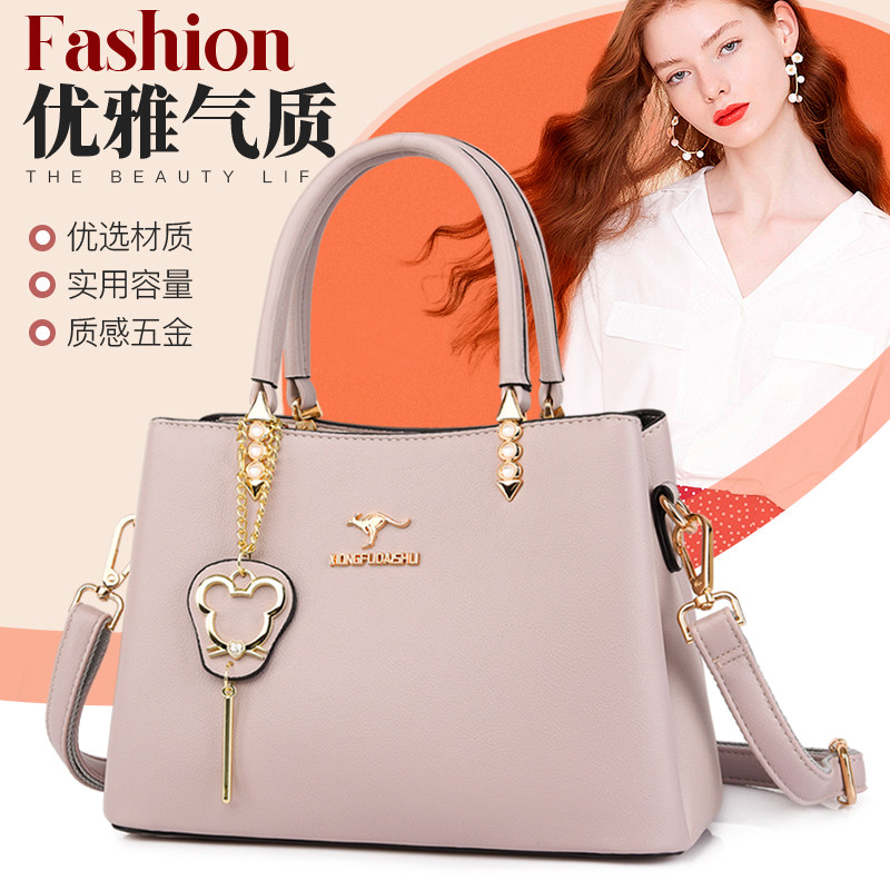 品牌袋鼠时尚手提包女包包新款2025单肩真皮包斜挎包中年妈妈包潮