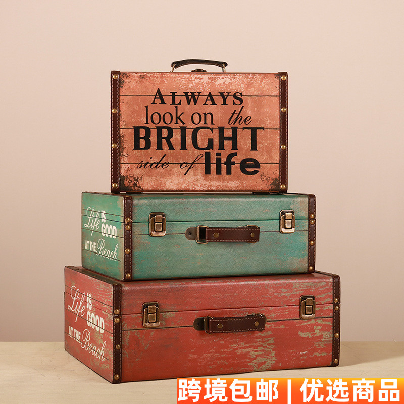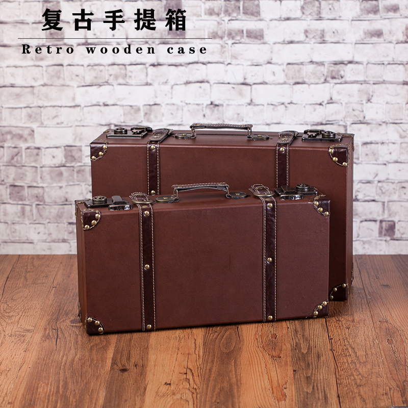 复古怀旧老式手提皮箱储物收纳整理木箱旅行箱婚纱摄影道具木箱子