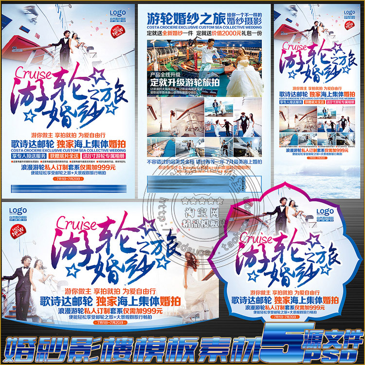 婚纱影楼邮轮游轮旅行结婚拍照摄影DM宣传单海报展架psd模板素材