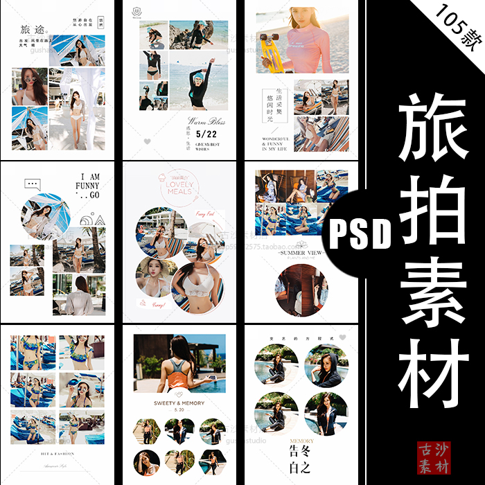 L018婚纱摄影旅拍设计素材婚纱写真生活照旅行相册排版模板105P