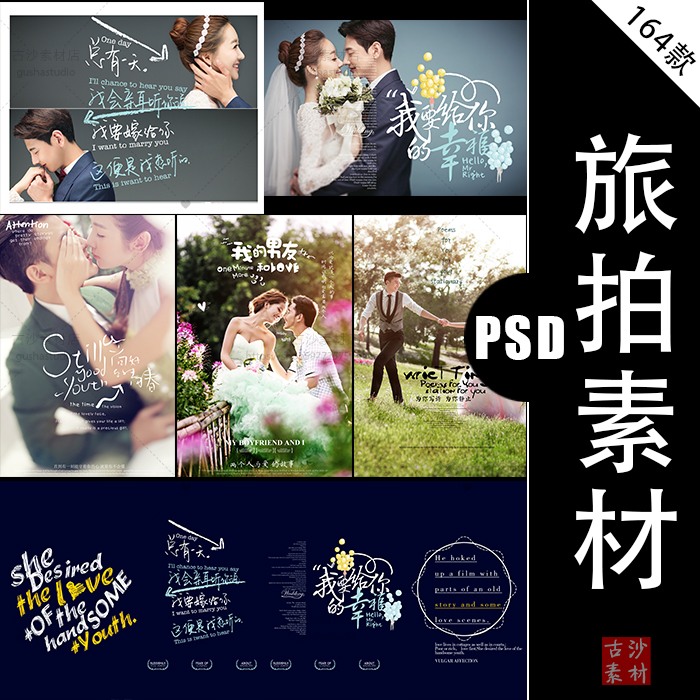 L026婚纱摄影旅拍设计素材婚纱写真旅行照片设计排版字体模板164