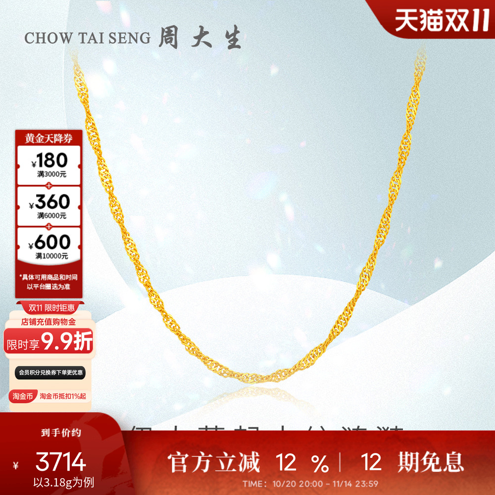 周大生黄金项链女足金水波纹锁骨链子素链可配吊坠生日礼物送女友